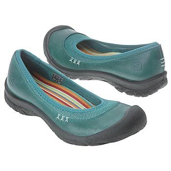 A gracefully classic style combines with durable comfort in the Keen Erin Ballerina skimmers. Leather and mesh upper in a slip-on casual flat style with a round toe, Patented Toe Protection (R) bumper and contouring protective rand. An elasticized scoop vamp collar with a breathable mesh vamp inlay assures comfortable fit. Textile lining and removable perforated KEEN.CUSH insole. Flexible midsole and durable carbon rubber traction-pattern outsole. 1 inch heel.